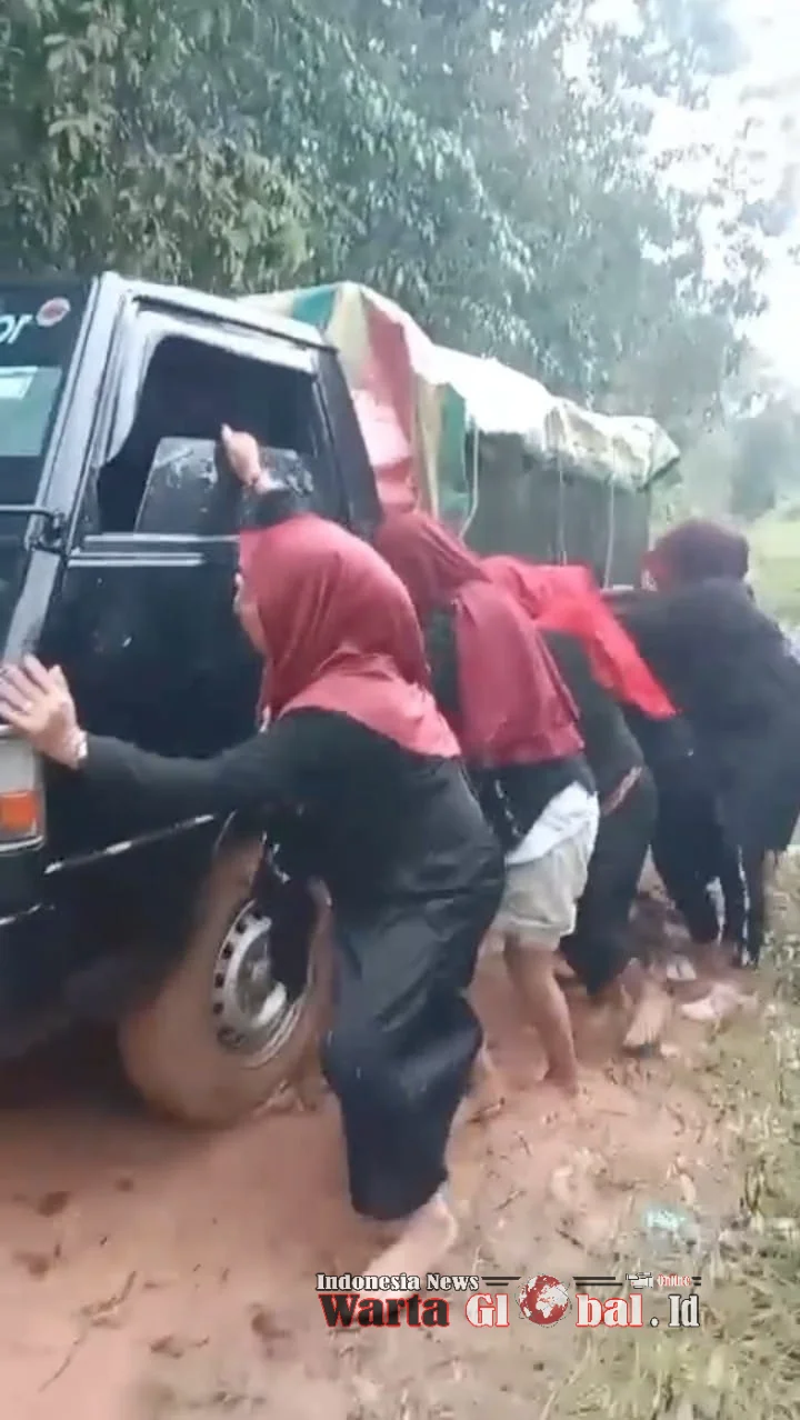 Ogan Ilir, Sumsel, Minggu 21 Sep 2025 - Wartaglobal.id - Slogan pembangunan daerah "Ogan Ilir Bangkit" kembali menjadi perhatian publik seiring dengan kondisi infrastruktur jalan di beberapa wilayah yang masih memprihatinkan. Warga di sejumlah desa masih menghadapi tantangan akibat jalan berlumpur dan rusak. Sebuah video yang beredar di media sosial memperlihatkan реаlitа yang dihadapi warga, di mana beberapa ibu-ibu tampak berupaya membantu mendorong mobil yang kesulitan melintasi jalan yang berlumpur saat hendak menghadiri pengajian.