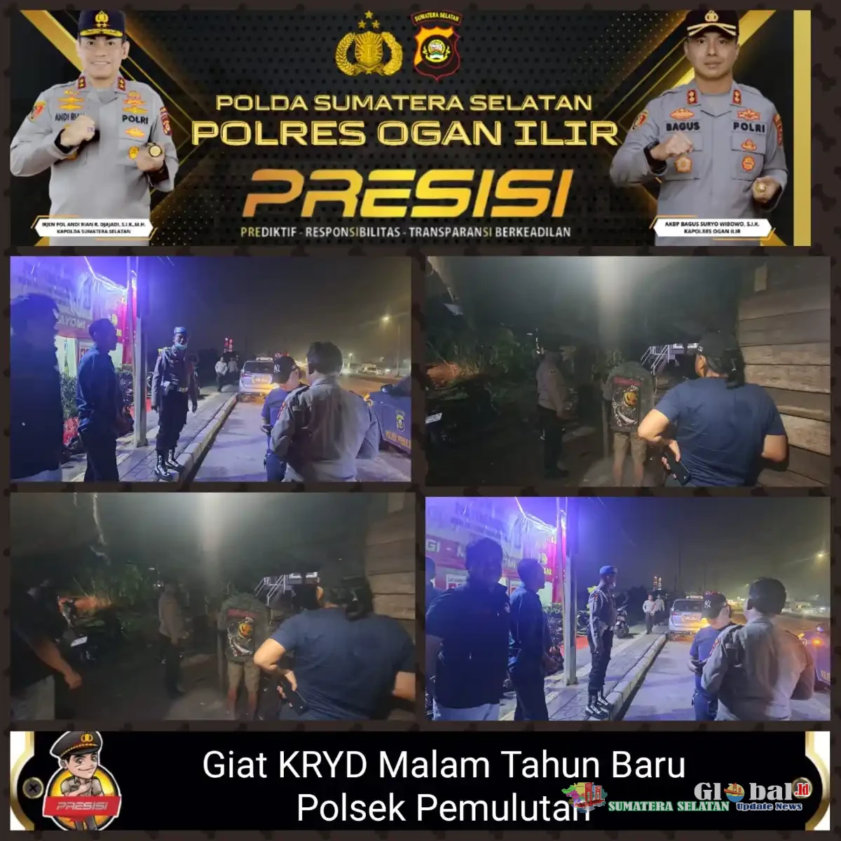 Kegiatan diawali dengan apel persiapan pengamanan yang dilaksanakan sekitar pukul 21.00 WIB di Mako Polsek Pemulutan, Kecamatan Pemulutan, Kabupaten Ogan Ilir. Apel dipimpin langsung oleh Kapolsek Pemulutan, AKP Nugrah Angga Oktari, S.H., serta diikuti oleh seluruh personel Polsek Pemulutan dan personel Koramil Pemulutan.