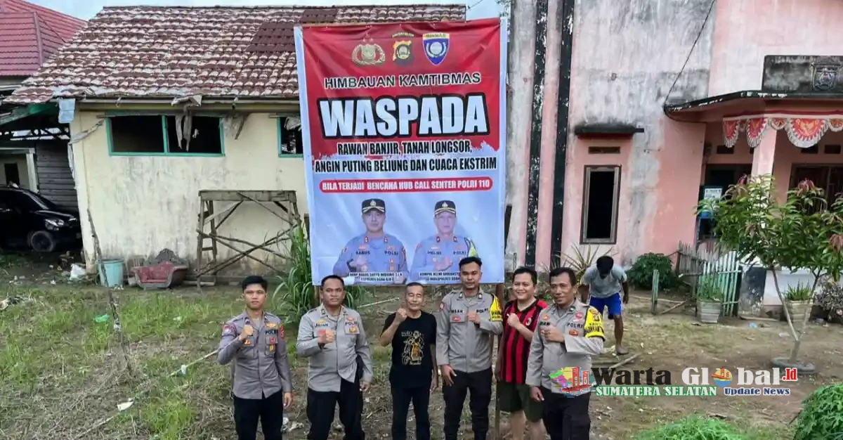 OGAN ILIR – Sumsel.wartaglobal.id Dalam rangka meningkatkan kewaspadaan masyarakat terhadap potensi bencana alam akibat cuaca ekstrem, Satuan Binmas Polres Ogan Ilir melaksanakan kegiatan pemasangan himbauan di sejumlah desa rawan banjir, tanah longsor, dan angin puting beliung di wilayah Kecamatan Pemulutan Barat, Kabupaten Ogan Ilir, Selasa (16/12/2025).