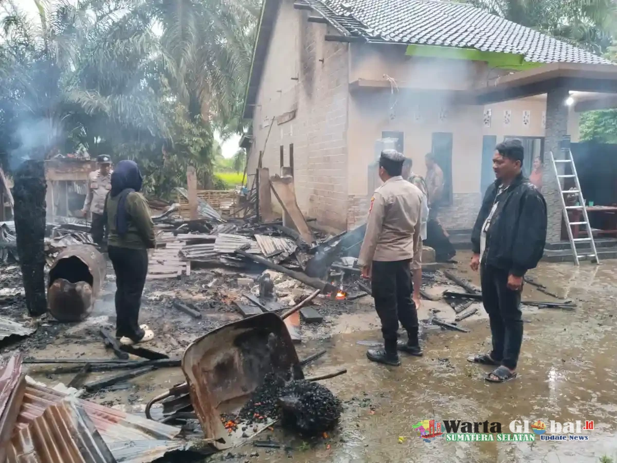 Personel Polsek Tanjung Raja Polres Ogan Ilir menindaklanjuti peristiwa kebakaran yang menghanguskan satu unit rumah panggung milik warga di Dusun II RT 04 Desa Ketapang II, Kecamatan Rantau Panjang, Kabupaten Ogan Ilir, pada Kamis dini hari, 8 Januari 2026, sekitar pukul 02.00 WIB.
