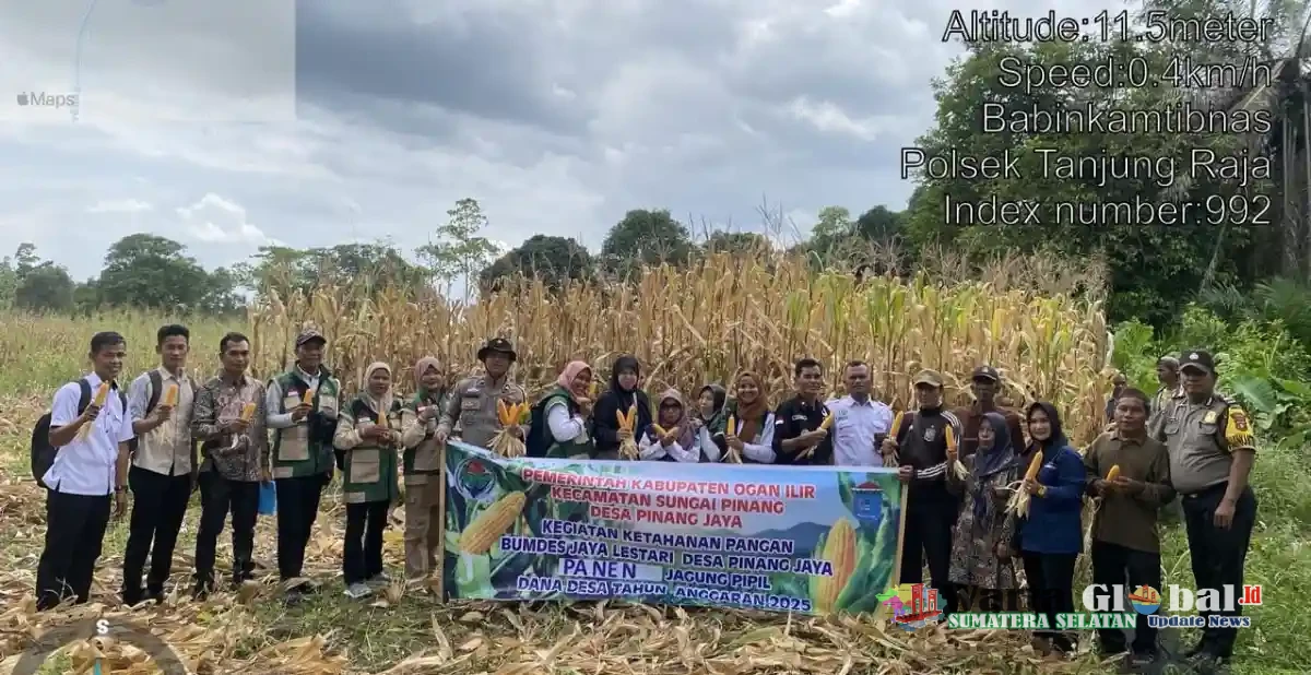 Dalam rangka mendukung program Ketahanan Pangan Pemerintah Republik Indonesia, Polsek Tanjung Raja melaksanakan kegiatan panen jagung pipil di Desa Pinang Jaya, Kecamatan Sungai Pinang, Kabupaten Ogan Ilir, pada Rabu (28/1/2026) sekitar pukul 10.00 WIB.
