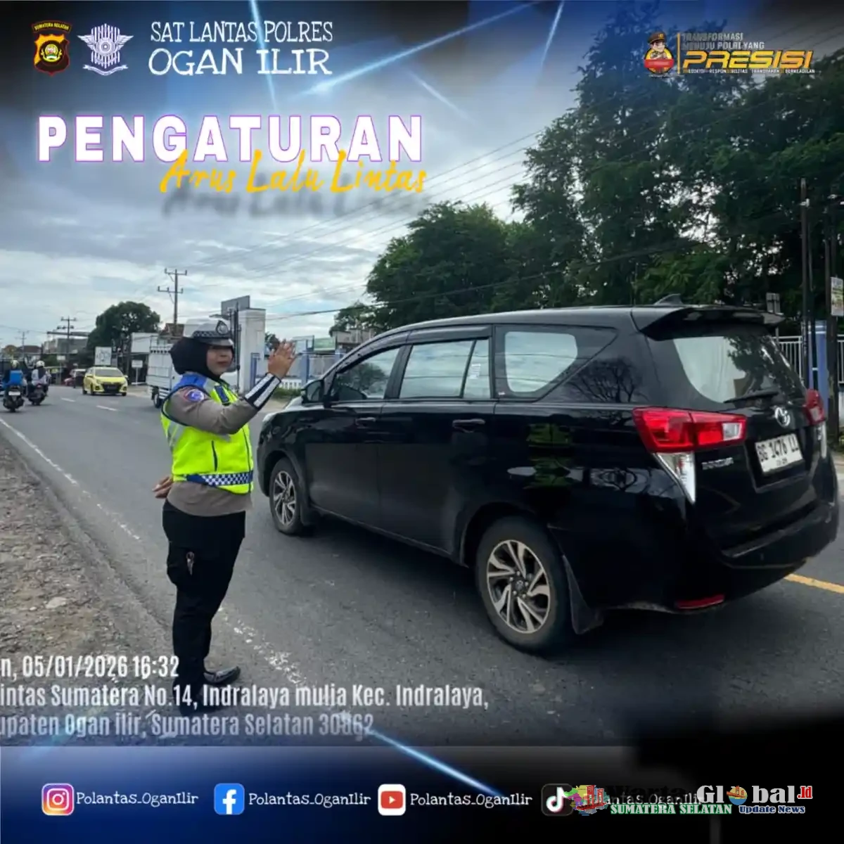 Kegiatan dimulai pukul 16.00 WIB hingga selesai dengan melibatkan 20 personel Sat Lantas Polres Ogan Ilir yang dipimpin langsung oleh Kanit Turjagwali Sat Lantas Polres Ogan Ilir. Personel ditempatkan di sejumlah titik rawan kemacetan dan kecelakaan lalu lintas serta pusat aktivitas masyarakat, di antaranya Pintu Utama UNSRI, Simpang Nusantara PGRI, Simpang Ladiva, Simpang PLN, Simpang Poci, Simpang Koramil, dan kawasan SMAN 1 Indralaya.