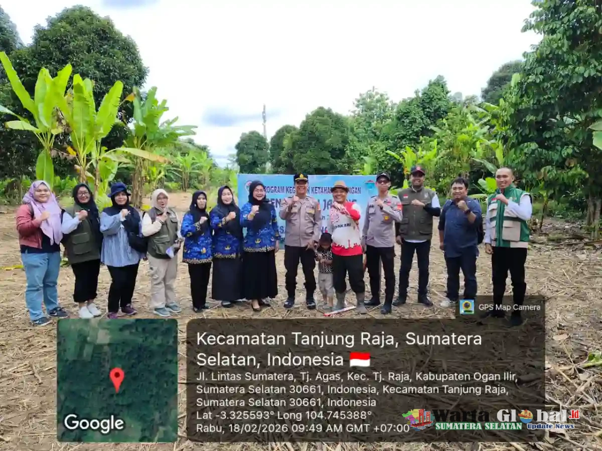 Tanjung Raja – Dalam rangka mendukung Program Ketahanan Pangan Nasional, jajaran Polsek Tanjung Raja bersama Pemerintah Desa Tanjung Agas melaksanakan kegiatan penanaman bibit jagung di Dusun I RT 01 Desa Tanjung Agas, Kecamatan Tanjung Raja, Kabupaten Ogan Ilir, Rabu (18/02/2026).